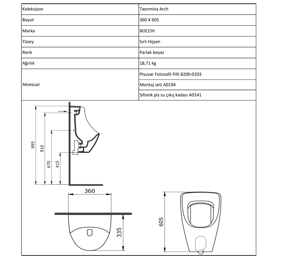 Bocchi Taormina Arch Pisuvar Fotoselli Pilli Mat Kaşmir