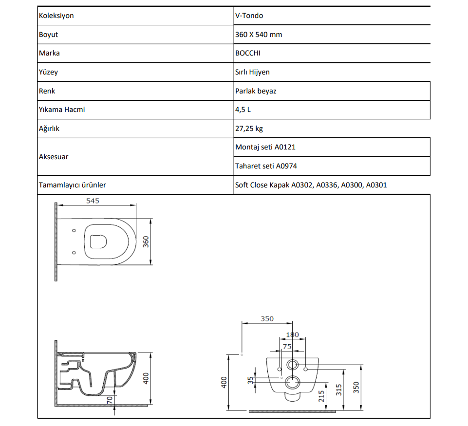 Bocchi V Tondo Rimless Asma Klozet Parlak Turuncu (Klozet Kapağı Hariçtir)