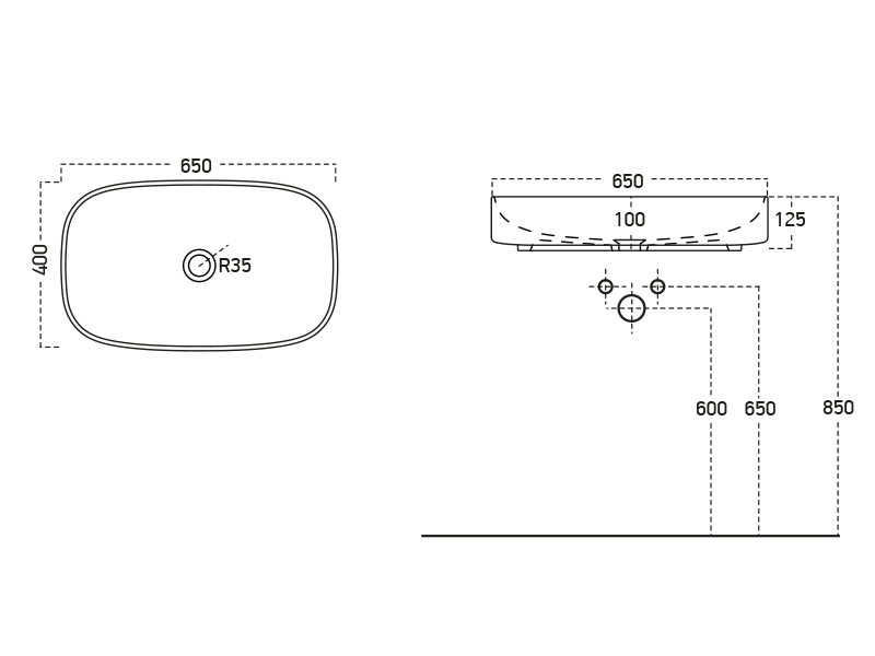 Lucco Matteo Çanak Lavabo 65 cm, Parlak Beyaz