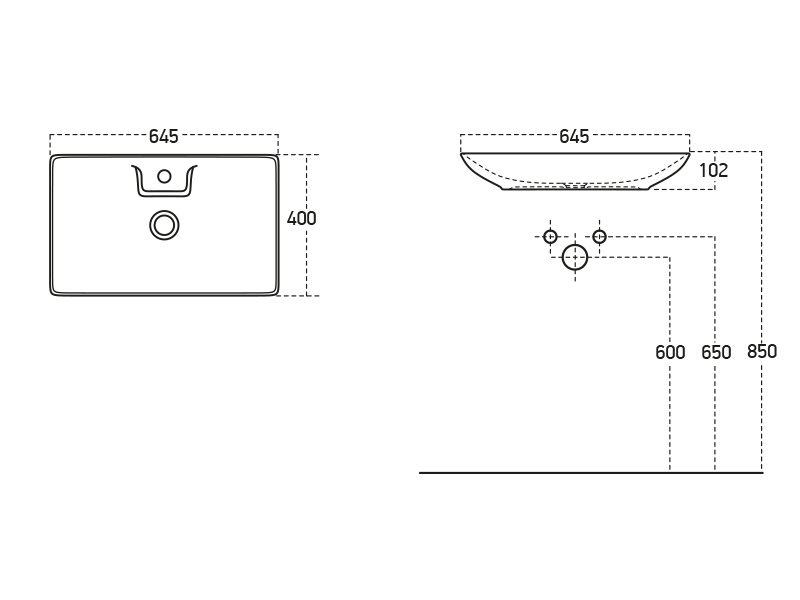 Lucco Perla Tezgah Üstü Lavabo 65 cm, Mat Beyaz