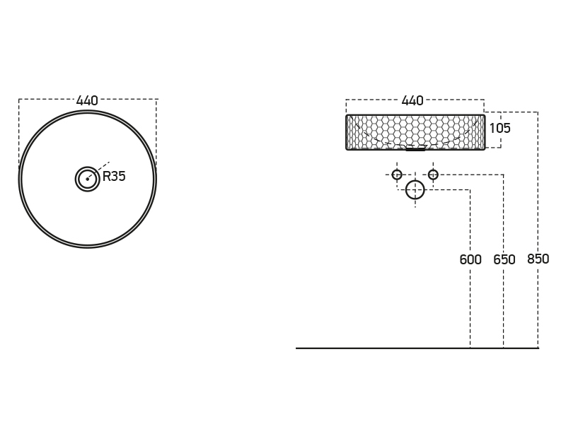 Lucco Siena Çanak Lavabo 44 cm, Mat Gümüş Gri